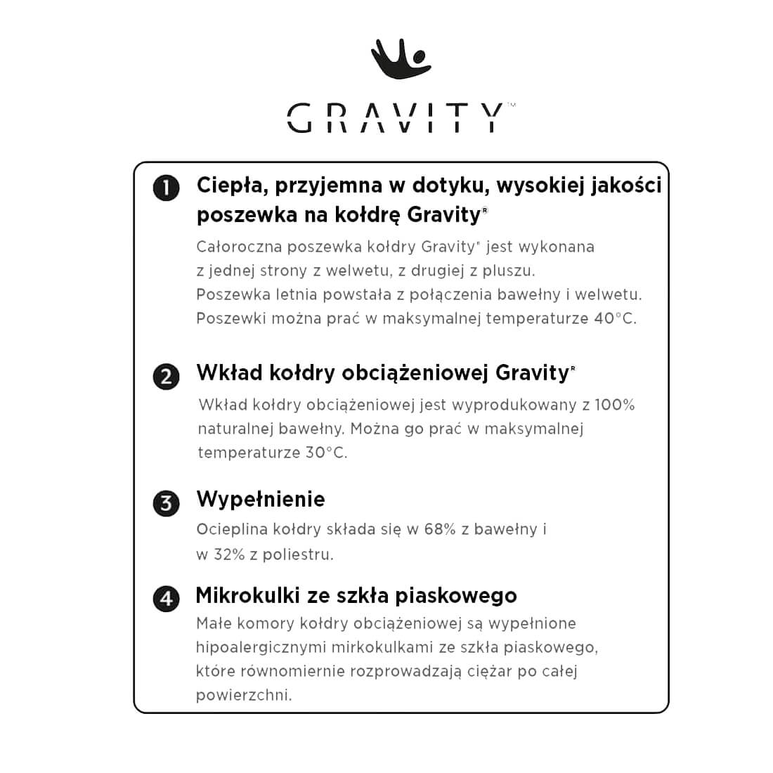 Kołderka obciążeniowa dla dzieci Gravity Blanket to jednak nie tylko doskonałe właściwości lecznicze, doceniane przez fizjoterapeutów na całym świecie, ale także doskonały design, oparty o wysokogatunkowe materiały i tkaniny. Kołdra szyta jest bowiem na profesjonalnych maszynach, przez wyspecjalizowaną kadrę, a jej niezwykła budowa gwarantuje długą żywotność. Bawełniana poszewka jest przewiewna i miła w dotyku. Pod nią znajduje się bawełniana kołdra wypełniona szklanymi, mikro-kulkami, tworzących przepikowane komory. Wszystkie elementy są ściśle ze sobą połączone i nie przesuwają się względem siebie, dzięki specjalnym mocowaniom w postaci 12 troków. Kołderka obciążeniowa dla dzieci jest również łatwa w konserwacji – poszewkę można bowiem ściągnąć i prać osobno według zaleceń producenta (40stopni).