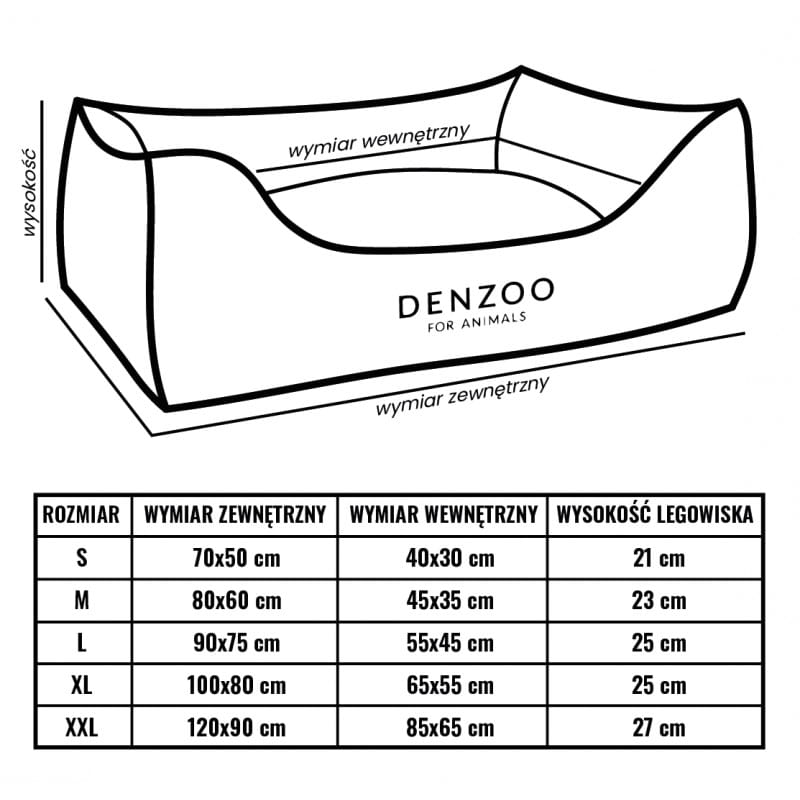 - Dostępne rozmiary legowisk MILANO: S - 70x50 cm M - 80x60 cm L - 90x75 cm XL - 100x80 cm XXL - 120x90 cm