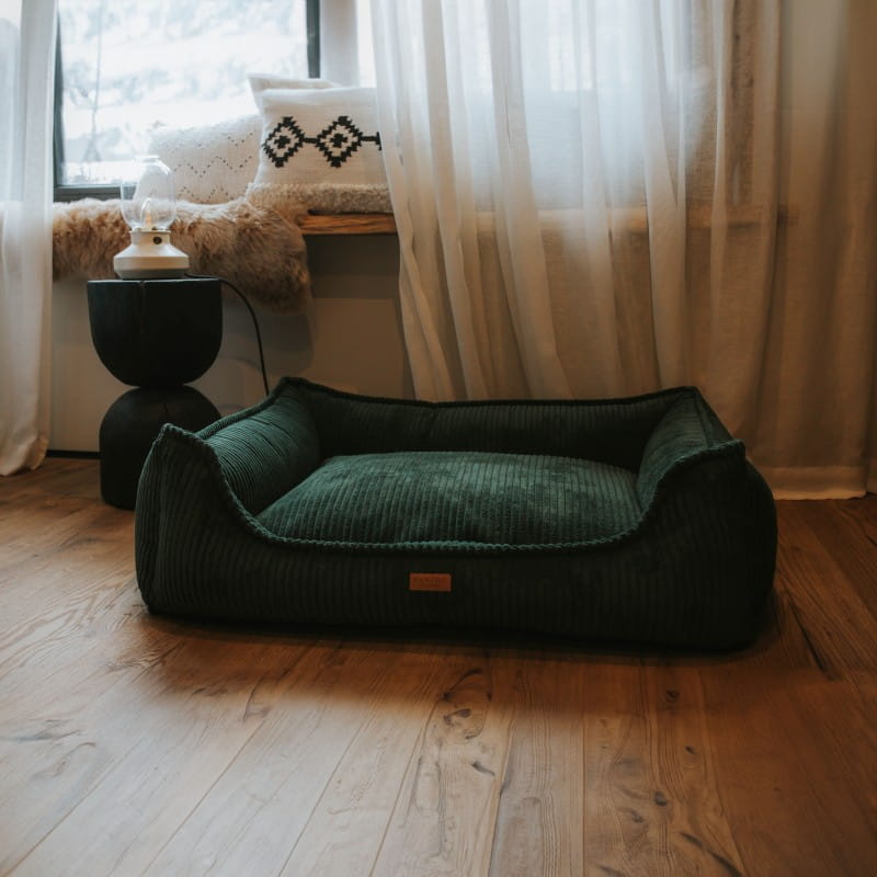Wybierz MILANO BOTTLE GREEN - legowisko, które łączy subtelna elegancję z najwyższym komfortem. Podaruj swojemu pupilowi przestrzeń, która będzie nie tylko wygodnym miejscem odpoczynku, ale także stylowym elementem Twojego wnętrza!