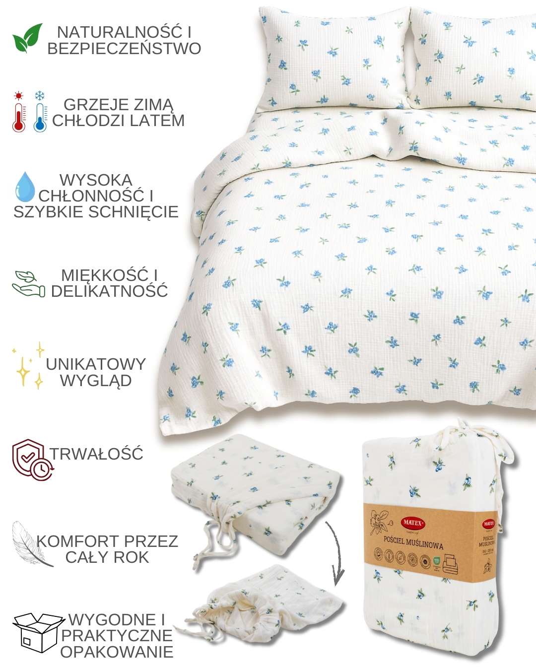 ✔ miękka pościel muślinowa przyjazna dla skóry
