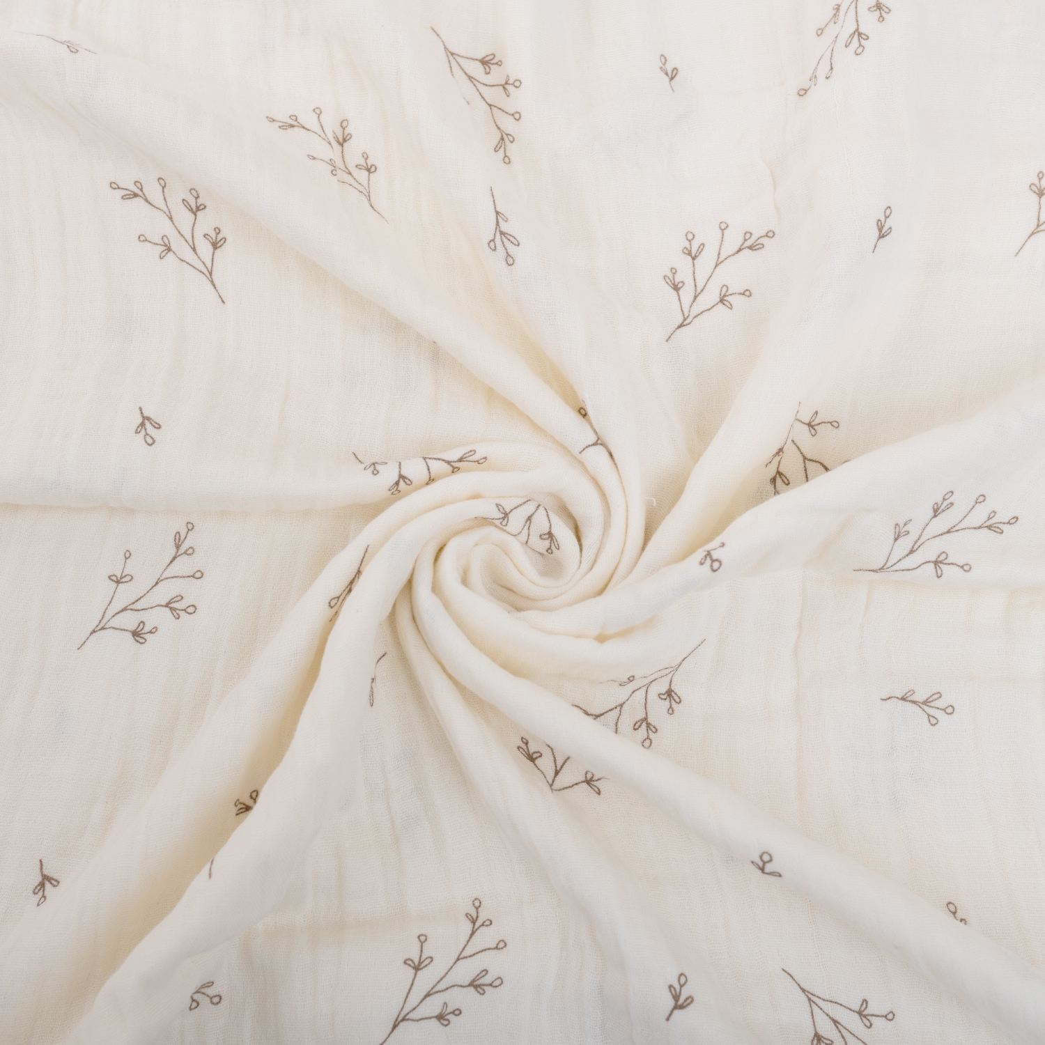 • nie prasować – naturalna struktura muślinu jest jego atutem